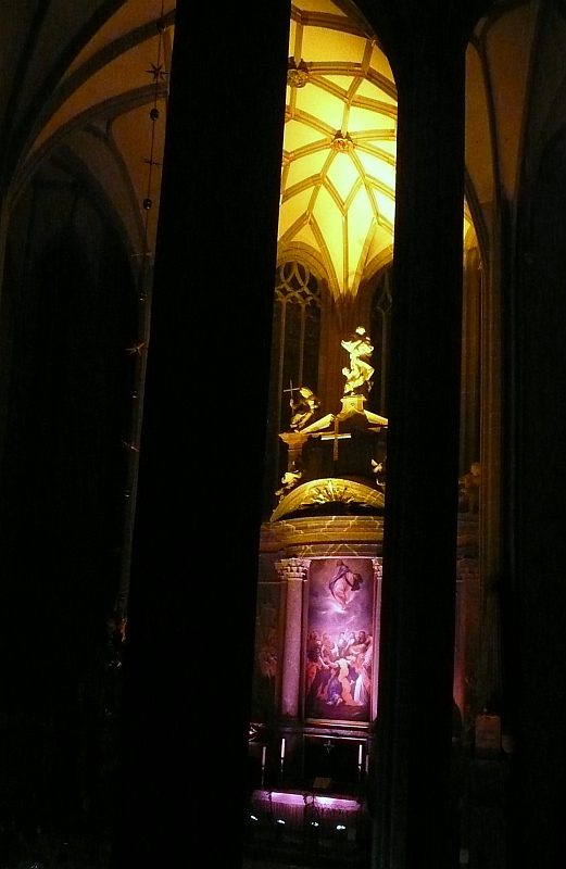 Der Altar der Peterskirche während der Lichtinstallation beim Konzertauftakt von 'Farfarello im Licht' am 5.11.2008